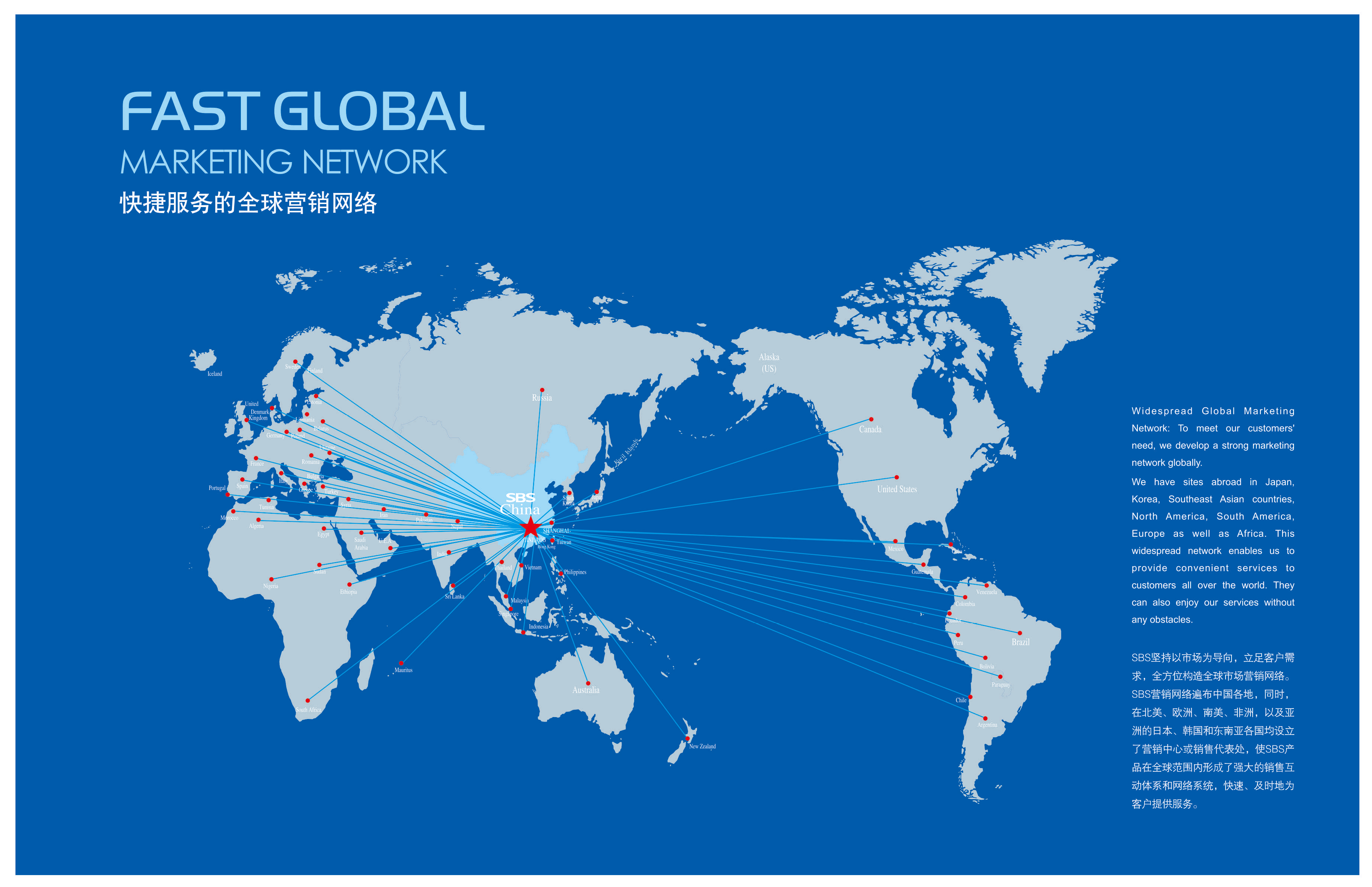 SBS品牌产品定位中高端市场,以“速度、超越、服务”为经营理念,积极向全体员工宣导“辅成客户大业是SBS的荣誉更是责任”的敬业精神,以普通消费者的视角一丝不苟地用心做好每一条拉链,通过高品质产品与客户和消费者真情沟通,并将之贯穿于生产经营的每一个环节,带给客户从时尚设计、精工制造到专家销售、承诺式服务等一整套解决方案。SBS产品远销世界70多个国家和地区,赢得了众多国内外优质品牌客户,成为值得他们信赖的战略性合作伙伴。“紧密相连,共创未来”是公司的核心价值观。SBS追求社会、股东、员工、客户、伙伴多方参与者的共赢。SBS成功的基础就是让客户成就他们的卓越,与所有合作伙伴共同成长。